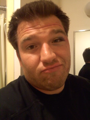 Once at the hospital the doctor quickly examined me and I was rushed off to get a CT scan on my head, neck and back. The CT scan showed that I had a small hematoma near the crown of my head. This is a small bleed and it was about the size of a quarter. The result from slamming my head on the ground and maybe someone landing on my head jarred my brain against my skull creating a tare allowing blood to come through the brain tissue. The doctors wanted to keep me over night to monitor my condition and make sure it did not worsen. After a lot of sleep and pain meds and another CT scan I was able to come home yesterday afternoon. The second CT scan showed that the bleed did not get any bigger and that was a positive. So now I am home resting and taking it easy. I still have a gnarly headache and my face is pretty swollen. I took these pictures on the way home from the hospital. I tried to get Brooke to take pictures of me when I was on the backboard and had the C-collar on but she didn't want to.